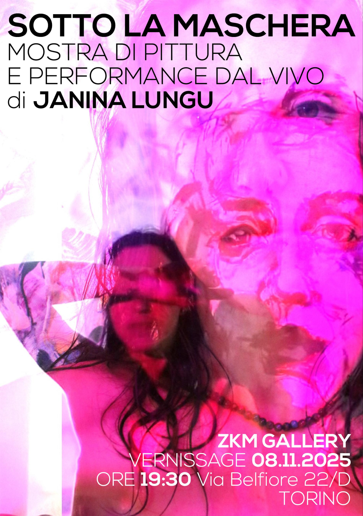 08 - 13/11/2025 "Sotto la maschera" è una performance artistica unica e affascinante che esplora la relazione tra identità, rappresentazione e creatività. Durante l'evento, Janina Lungu dipinge dal vivo il proprio autoritratto con le suggestive sonorizzioni di Francesca Caston in arte Frà Maria, utilizzando le ombre del proprio corpo volto a rianimare la figura bidimensionale sulla tela, creando un'interruzione nella rappresentazione statica e riducendola alla connotazione di una maschera. La performance rappresenta un tentativo di esplorare la relazione tra l'artista e la sua rappresentazione, sfidando la staticità della figura sulla tela e mettendo in evidenza la molteplicità degli Io che si celano dietro la maschera dell'identità. "Sotto la maschera" è una performance che invita il pubblico a riflettere sulla natura dell'identità e della rappresentazione, sulla relazione tra l'artista e la sua opera, e sulla complessità della psiche umana, mettendo in evidenza la molteplicità degli Io che si celano dietro la maschera dell'identità.